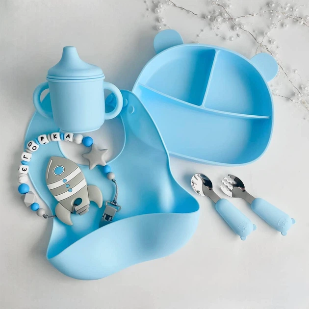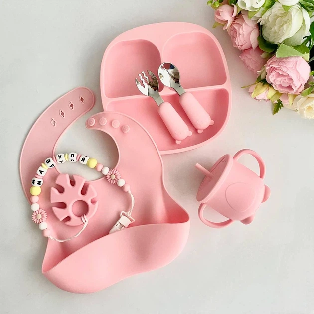 Набір комплект силіконового дитячого посуду для дитини 7 предметів