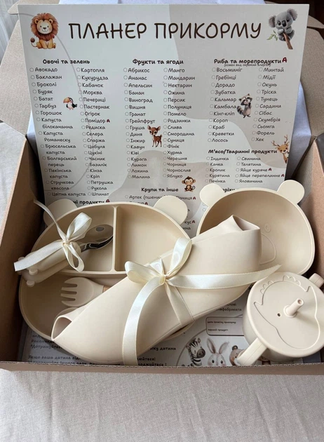 Набір посуду для малюка Тепло маминих рук 0433 Кремовий Посуд для малюка комплект Дитячий посуд для першого прикорму