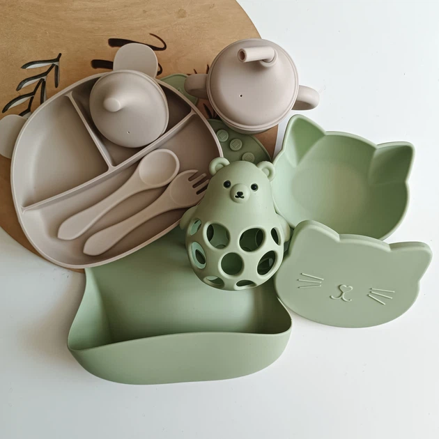 Набір дитячого силиконового посуду Olive на 8 предметів з безпечного та харчового силикону