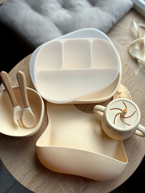 Набір дитячого силіконового посуду із 9 предметів beige з безпечного та харчового силікону