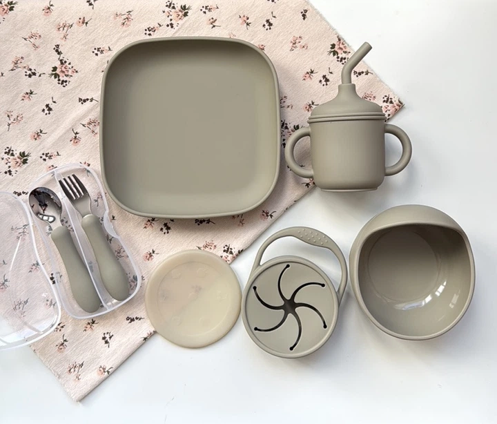Набір силіконового посуду для годування дітей із 6 предметів, з якісного, безпечного та харчового силікону