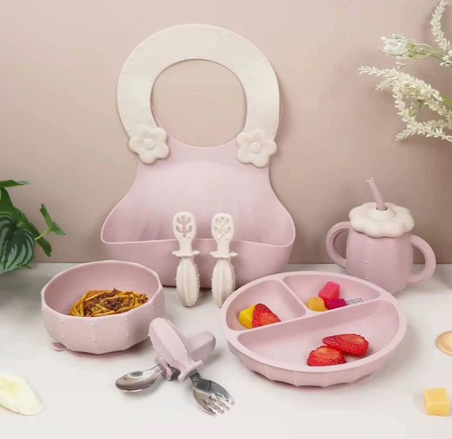 Набір силіконового посуду з 9 предметів із якісного, безпечного та харчового силикону Rose Pink