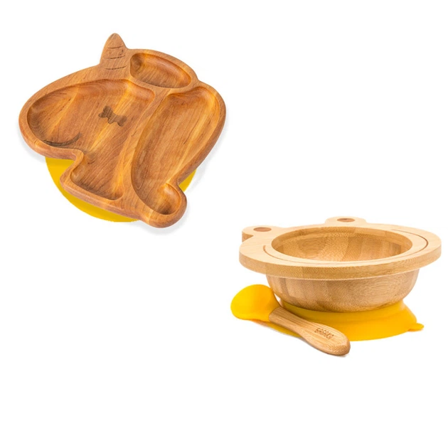 Набір 2в1 глибока миска Жабенятко та Єдиноріжка на присосці Бабака Жовтий (310204)
