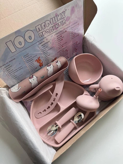 Набір дитячої силіконової посуду для першого прикорму дитини 8 предметів Mango