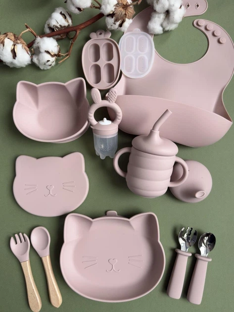 Набір дитячого посуду Котик для дівчинки Пудра 9 од (0301)