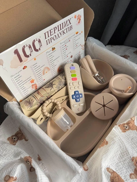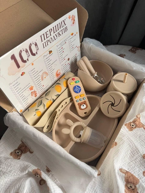 Набір дитячого силіконового посуду з 12 предметів сірий Космос Пакунок малюка