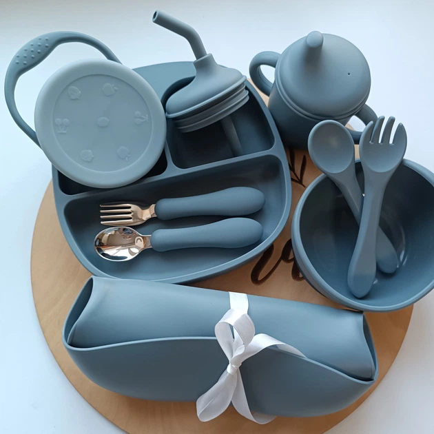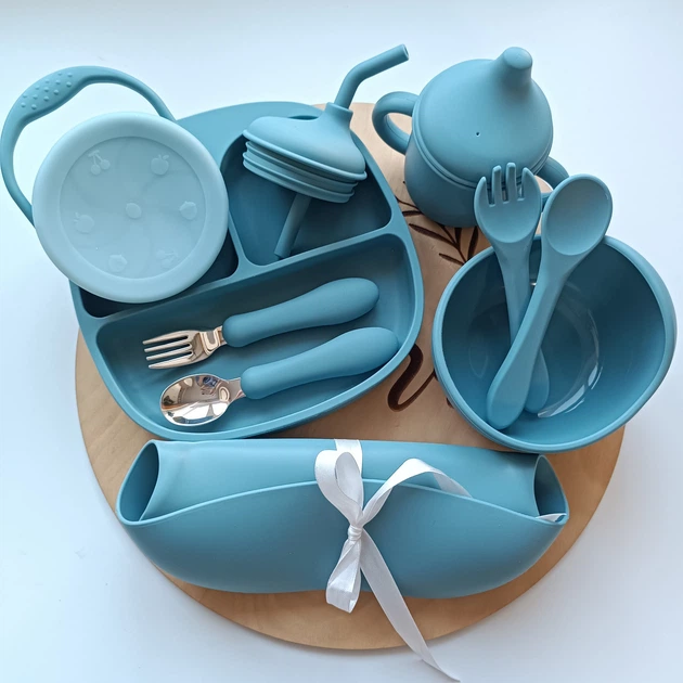 Набір посуду для малюка Смокі блу 10 шт Посуд для малюків безпечний екологічний (0205)