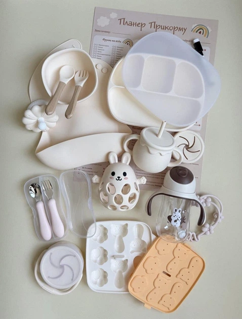 Великий набір силіконового посуду для прикорму в кремовому кольорі (0397)