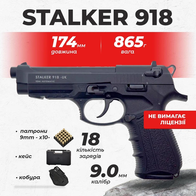 Стартовий пістолет Stalker 918 black Beretta 92 з кулями