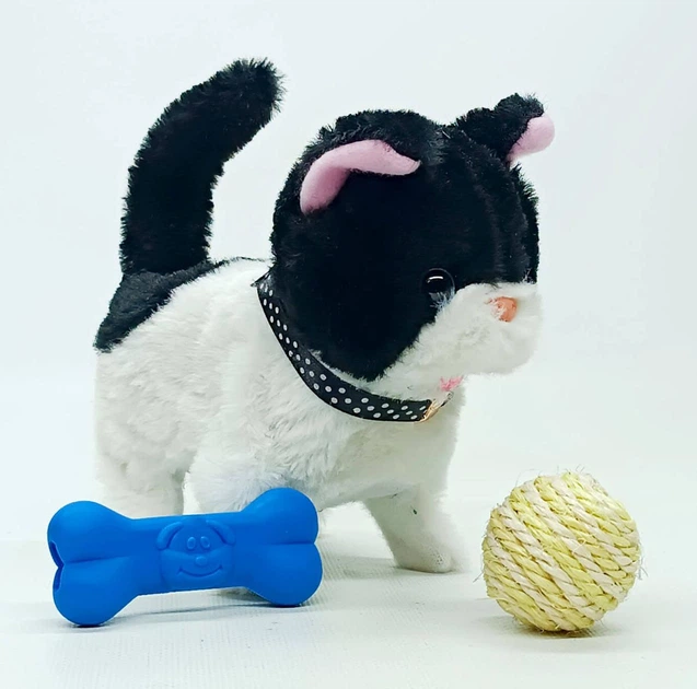 Інтерактивне кошеня Solar із клубком ниток, 17 см - чорно-біла м'яка іграшка
