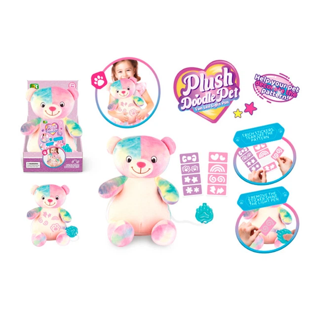 Плюшевий ведмедик із творчим набором (фонарик, трафарети), інтерактивна іграшка (DR5201)