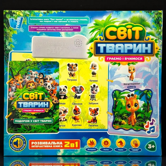 Інтерактивна книга "Світ тварин" "WToys" (укр), віршики, факти, гра з липучками, дошка для малювання