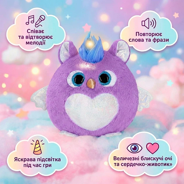 Інтерактивна м’яка іграшка Мудра Сова повторюшка з музичними мелодіями, LED підсвіткою та блискучими очима