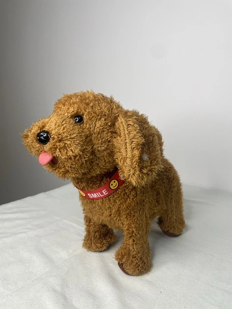 Інтерактивна іграшка собачка на повідку виляє хвостиком ходить песик гавкає реагує на голос коричнева