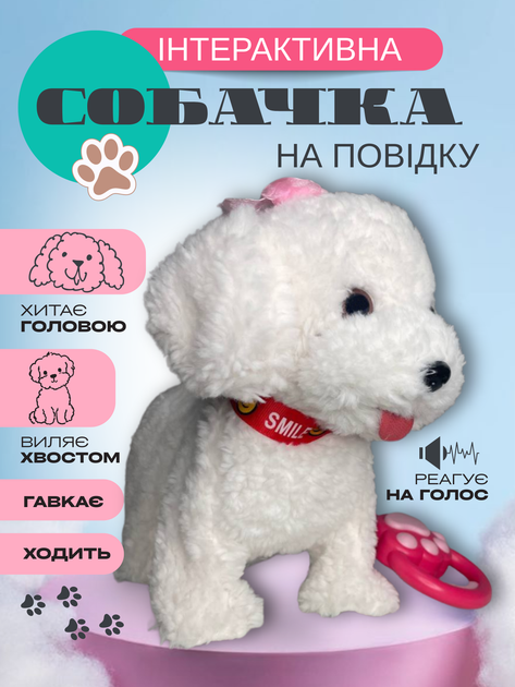 Інтерактивна іграшка собачка на повідку виляє хвостиком ходить песик гавкає реагує на голос біла