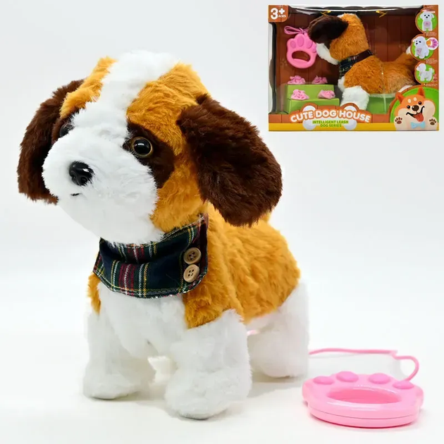 Інтерактивна іграшка Собачка на повідці ходить гавкає виляє хвостом для дітей сенсорний