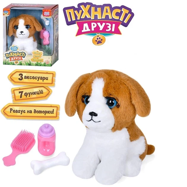 Дитяча інтерактивна м'яка іграшка "Собачка" LIMO TOY M 5953 I UA сенсорний музичний (українська)