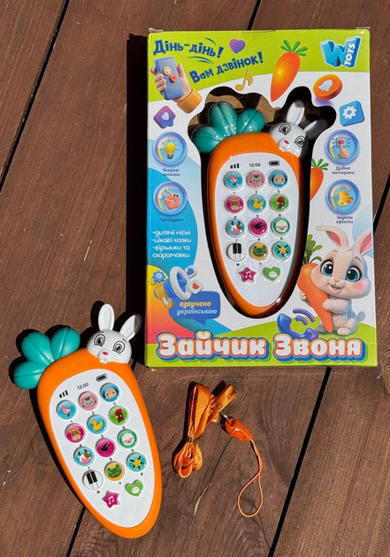 Дитяча розвиваюча іграшка - телефон WToys 80650 "Зайчик Звоня" помаранчевий Українська озвучка