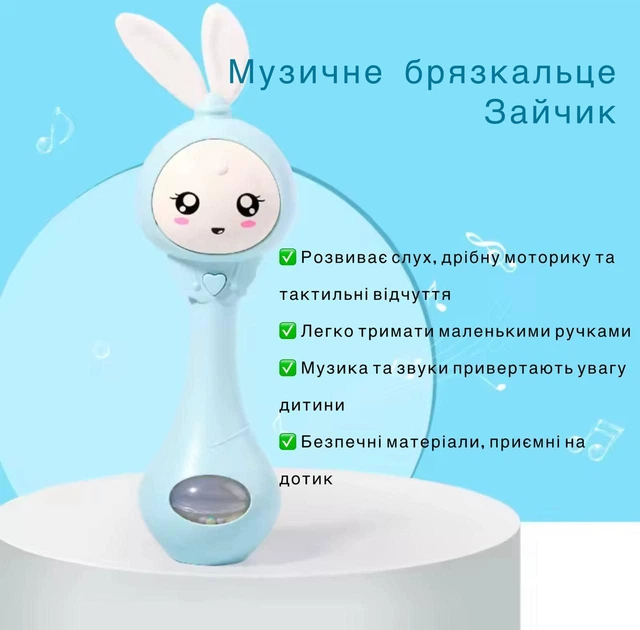 Іграшка інтерактивна, брязкальце Зайчик (бебі блю) музична розвиваюча, для малюків