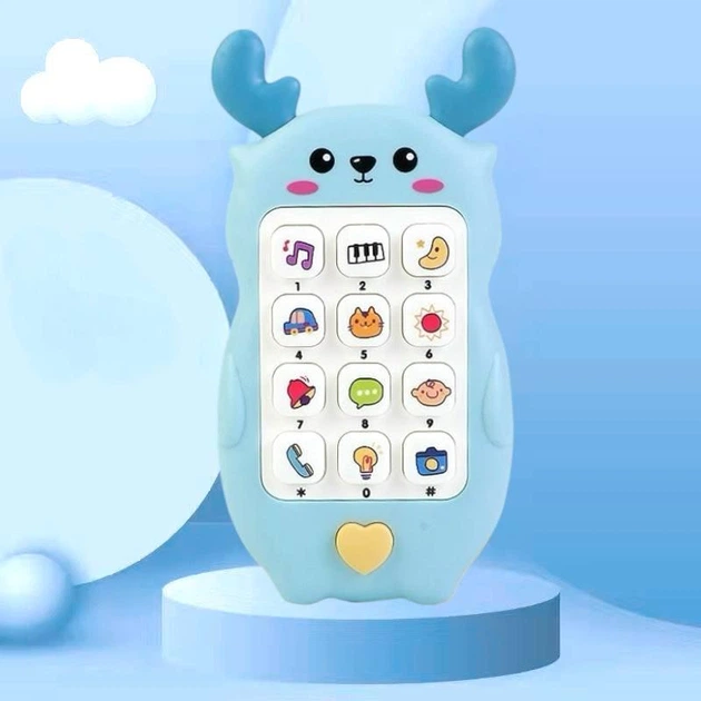 Дитячий музичний телефон Олень (блакитний), розвиваюча іграшка для малюків