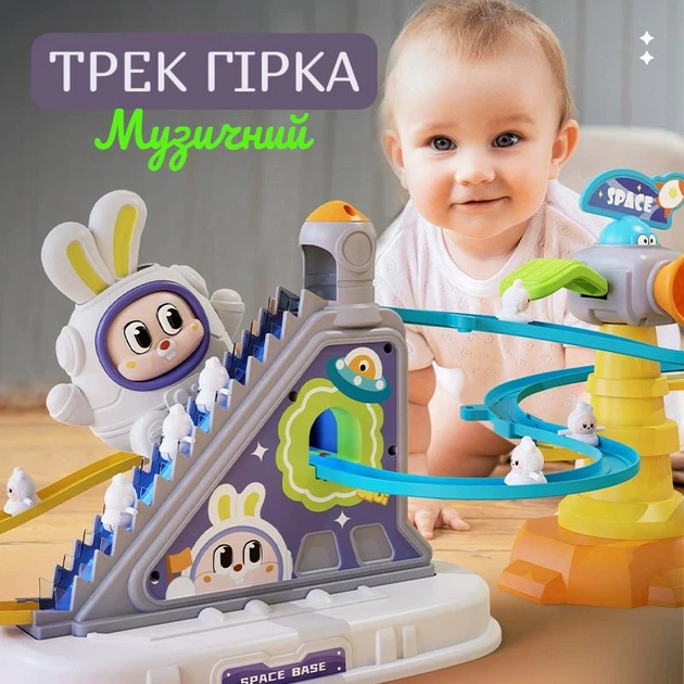 Гірка трек качки та зайчик спуск, Американськи гірки з автоматичним підймачем , музикою дитяча іграшка