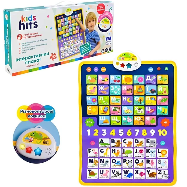 Дитячий навчальний плакат Перші знання інтерактивна українська мова 45х60см Kids Hits, KH07/001