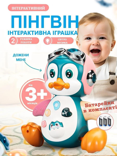 Інтерактивна іграшка Пінгвін що танцює зі світловими та звуковими ефектами для навчання повзання Батарейки у комплекті