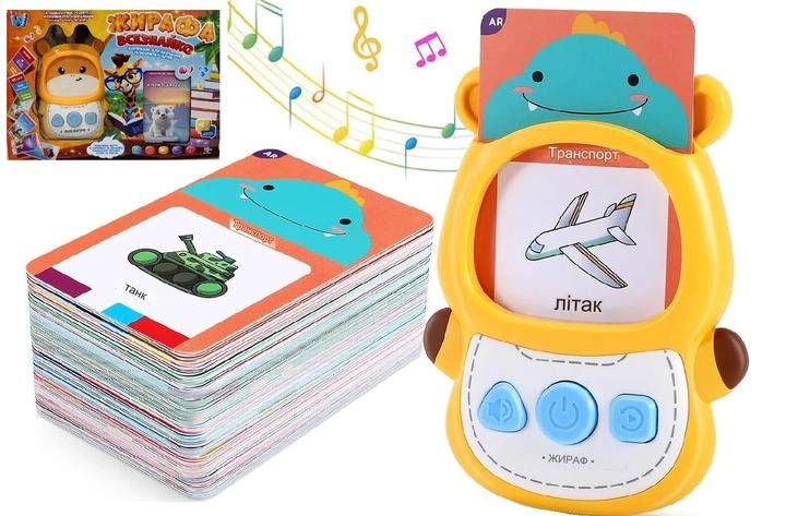 Кардрідер WToys Жирафа Всезнайко озвучено українською, казки, пісні, віршики, 122 картки, 244 зображення, 18 тем для навчанн