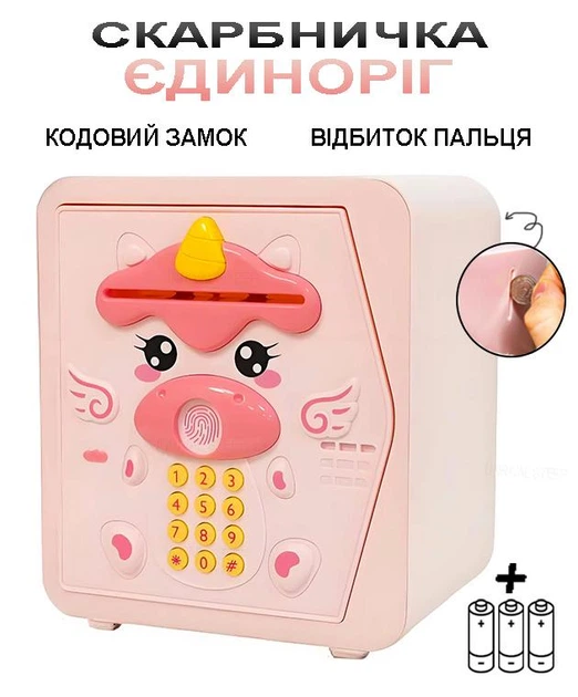 Дитячий сейф скарбничка з кодовим замком та відбитком пальця для дівчинки електронний музичний Money Steep Box Рожевий