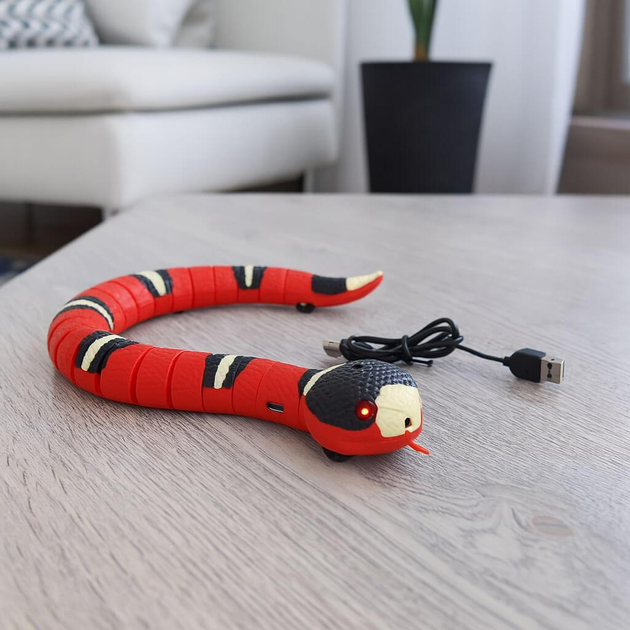 Рухома королівська змія 40 см на акумуляторі для дітей із підсвіткою голос червона