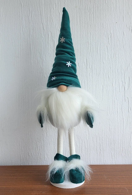 Скандинавський гном під ялинку Новорічний гном на ніжках зеленого кольору Гноми інтер'єрні Новорічний м'який гном ельф 50 см