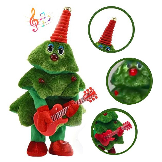 Ялинка іграшка новорічна танцююча співаюча плюшева з гітарою що співає різдвяна для дітей 40 см Зелена