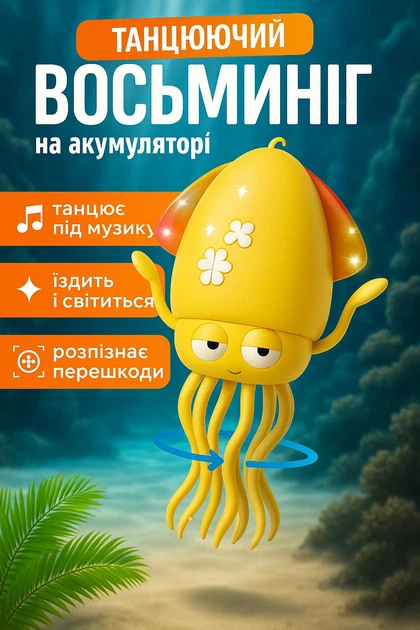 Інтерактивна іграшка Танцюючий Восьминіг музичний Кальмар з сенсорами реагування на перешкоди на акумуляторі Жовтий