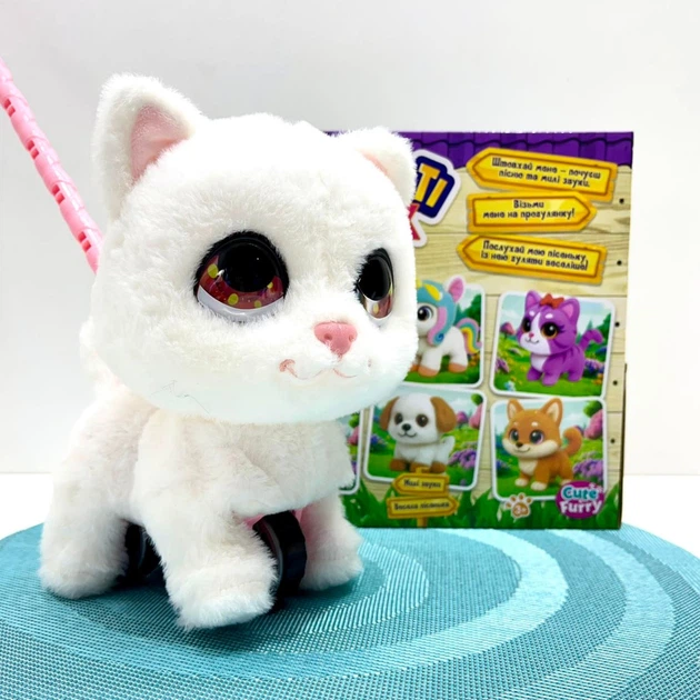 Котик-каталка на паличці інтерактивна українська мова Біла (M 6248 I UA)