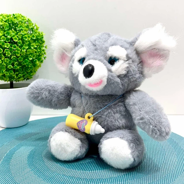Коала інтерактивна м'яка іграшка пляшечка в комплекті моргає сенсорний та магнітний датчик звук 24см Сірий (933-216 E)