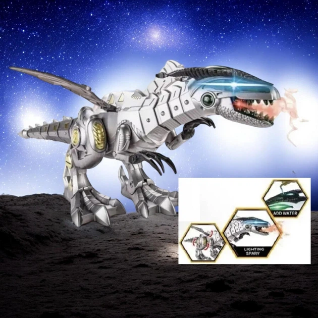 Інтерактивний Динозавр Xin Yuan Yu Dinosaur Machine Silver звукові та світлові ефекти пропускає пару