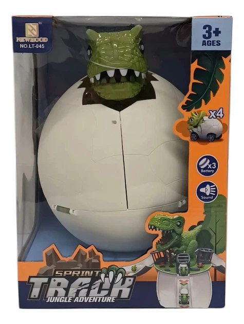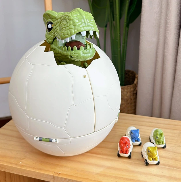 Траса-іграшка динозавр із яйця, трансформер зі світлом і звуком, комплект із 4 машинок