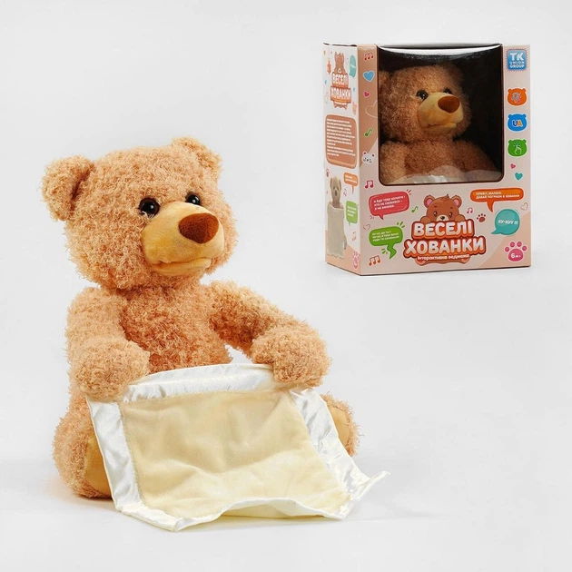Інтерактивний ведмедик Веселі хованки говорить українською, м'яка іграшка з хусткою для гри TK Group