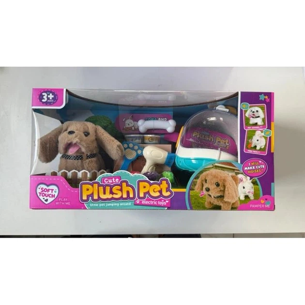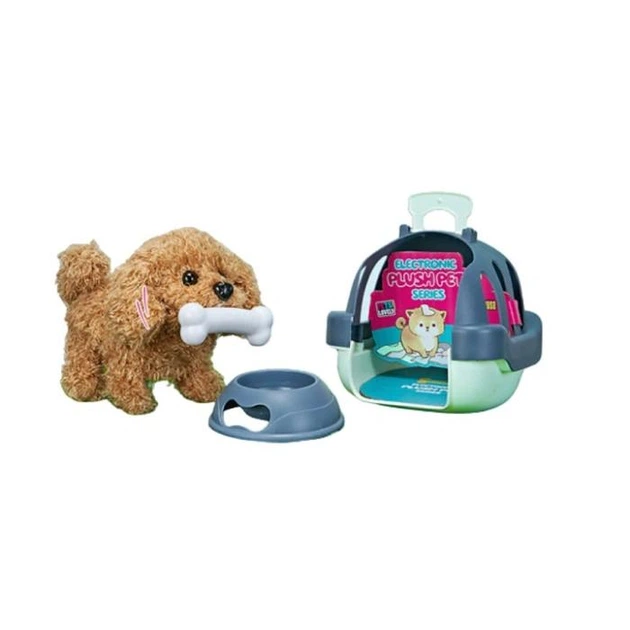 Інтерактивна іграшка Dog Brown 070, собачка плюшева з набором для догляду та переноскою