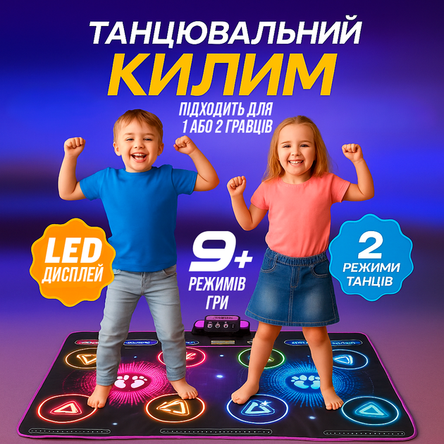 Музичний танцювальний килимок для двох дітей з вбудованою музикою та підсвічуванням для танців 9 режимів 8 кнопок