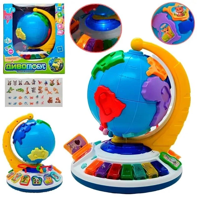 Розвивальний глобус для дітей казки, пісеньки, сортер, світло, музика, українською мовою WToys