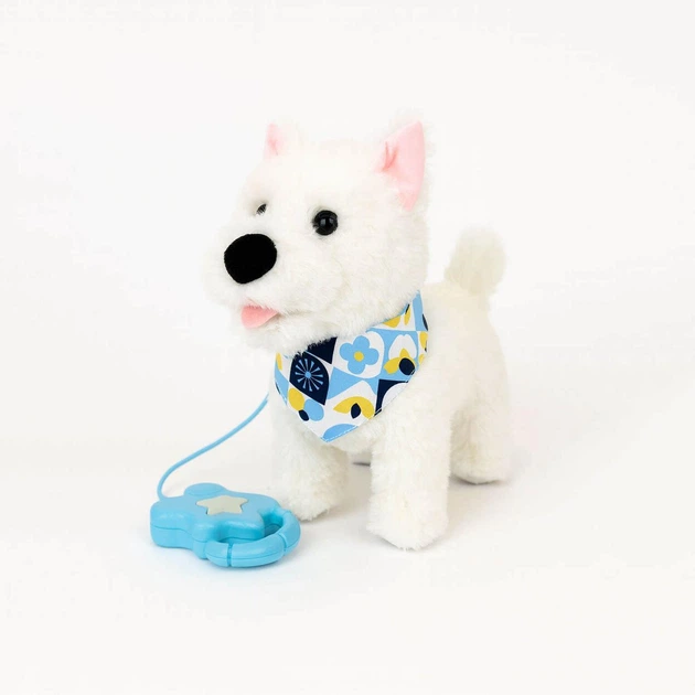 Інтерактивна собачка біла на повідку M6218UA-2, що ходить, співає українською та «лиже», 28 см