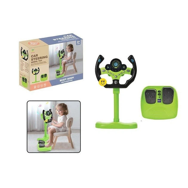 Кермо дитяче, автосимулятор, висота підставки 34 см, звукові ефекти, озвучування англійською, мелодії, підсвічування, педалі