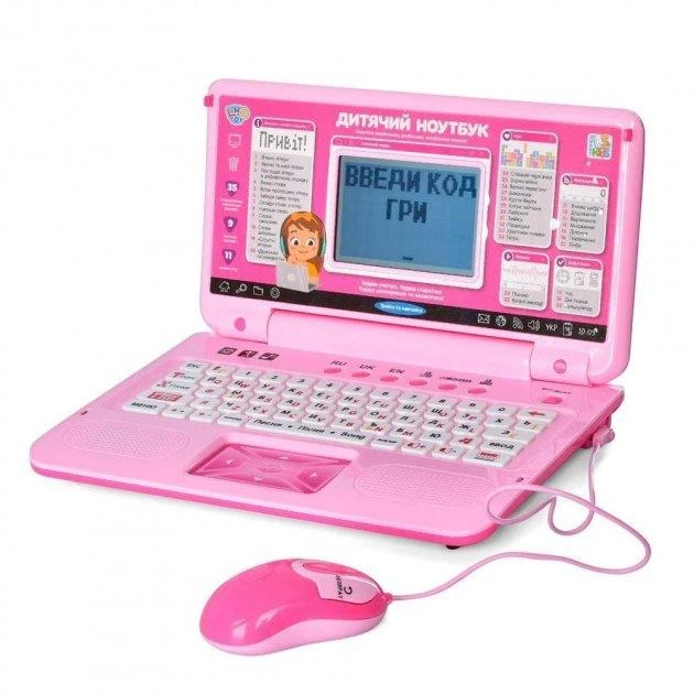 Дитячий комп'ютер Ноутбук навчальний Limo Toy SK7443 3 мови (укр-рос-англ) 35 функцій, 11 ігор, 9 мелодій Рожевий
