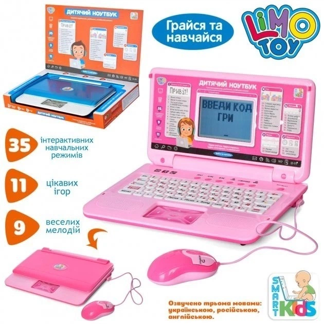 Інтерактивна навчальна іграшка Limo Toy Дитячий ноутбук 35 навчальних функцій + 11 ігор і 9 мелодій на англ/укр/рос мовами Р