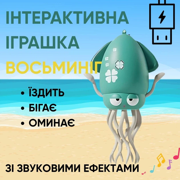 Танцюючий восьминіг інтерактивна музична іграшка для дітей зелений