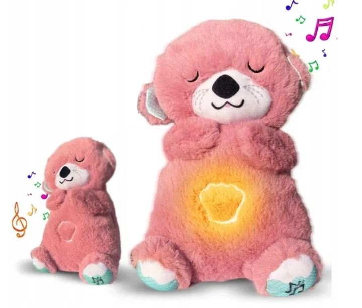 Інтерактивна м’яка плюшева іграшка Видра заспокійливийдля сну дітей нічник з підсвіткою музикою та ефектом дихання Рожевий