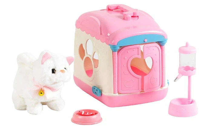 Кошеня на батарейках , ходить, нявкає, виляє хвостом, переноска, поїлка, миска. White (144704)