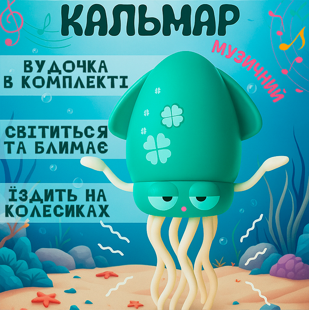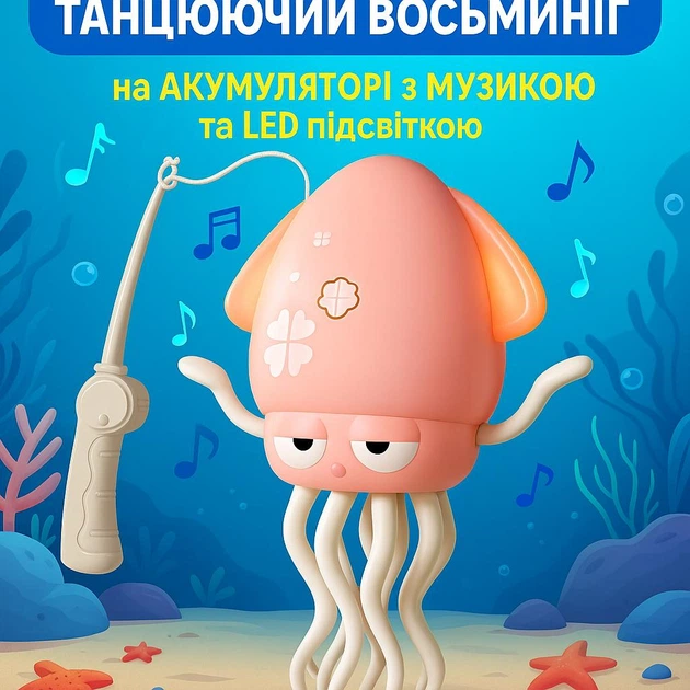 Музичний танцювальний кальмар-восьминіг дитяча інтерактивна іграшка на акумуляторі з музикою та танцями вудка імітація рибол