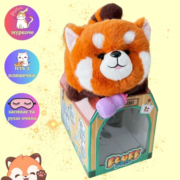 Інтерактивна м’яка іграшка Fluff Pets Песик Червона Панда що муркоче, їсть з пляшечки, засинає та рухає очима Рудий